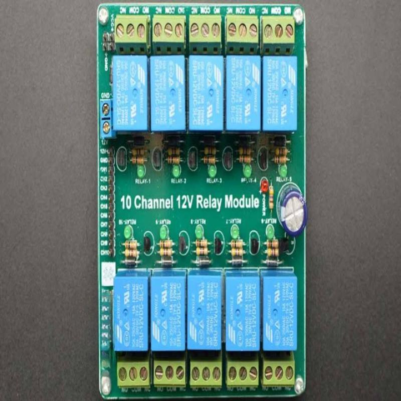 This board integrates ten 12V relays, allowing you to control up to 10 loads simultaneously. Each relay can be easily switched using a microcontroller, Arduino, or other logic-level devices, making it ideal for automation and control projects.