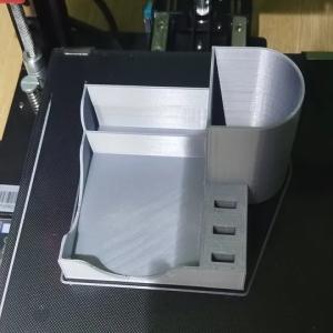 This 3D-printed organizer is designed to keep your pens, sticky notes, and USB drives always within reach. Its compact and modern design makes it perfect for any workspace. Say goodbye to clutter and add a pro touch to your desk. Material PLA+. Size 128x100mm