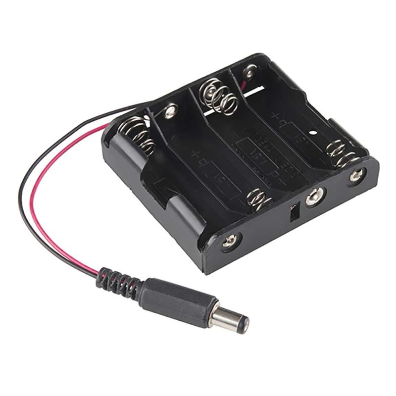 The 4 x AA Battery Holder with Jack is a convenient power solution for Arduino boards, robotics, toys, and small electronic projects. Designed to hold four AA batteries, it provides a stable 6V DC output through a pre-fitted DC barrel jack, eliminating the need for soldering or extra wiring. Popular among students, hobbyists, and engineers in Bangladesh, this holder is widely used in DIY electronics, portable devices, and small automation projects. Made from durable plastic with strong spring contacts, it ensures secure battery placement and reliable performance.