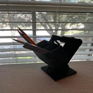 A small pencil holder designed to look like its being held by a robotic arm. PLA + Size 83 x 89 x 110 mm