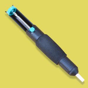 The solder sucker is a handy desoldering tool designed for use with a soldering iron. Simply melt the solder with the iron, place the solder sucker over the molten solder, and trigger it to quickly and cleanly remove excess solder.