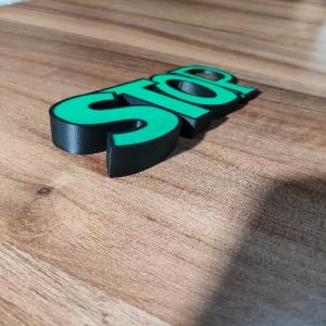 A door stopper in the shape of the word "STOP." It has a very stylish look, and its shape prevents doors from closing and slamming shut.