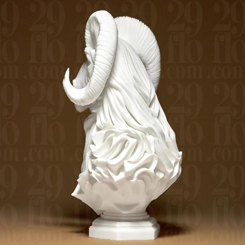 The Elegant RAM Sculpture is a striking decorative piece that blends strength and sophistication. PLA + size 105 x 108 x 150 mm.