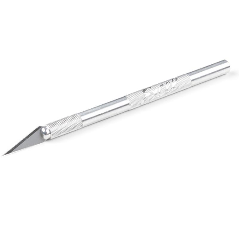 It’s like an Xacto knife, only better. We use these extensively when working with PCBs. These small knives work well for cutting traces, scraping ground pours, and guiding hair-like wires into their proper place. Excel knife comes with aluminum handle, one ultra-sharp blade, and safety cap.