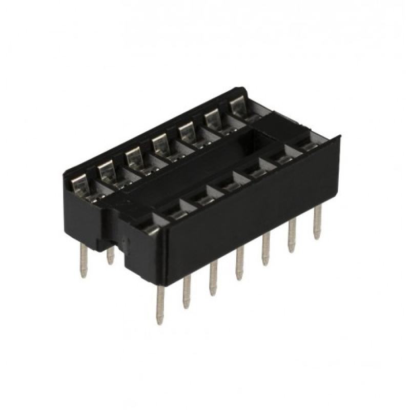 This PCB-mount IC base is designed to securely hold any 14-pin DIP IC, making insertion, removal, and replacement easy while protecting the chip from soldering heat damage.