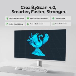 Comes with CrealityScan 4.0, supporting point cloud/mesh editing, multi-scan alignment, marker mode, face & body scanning, and AI-powered repair.