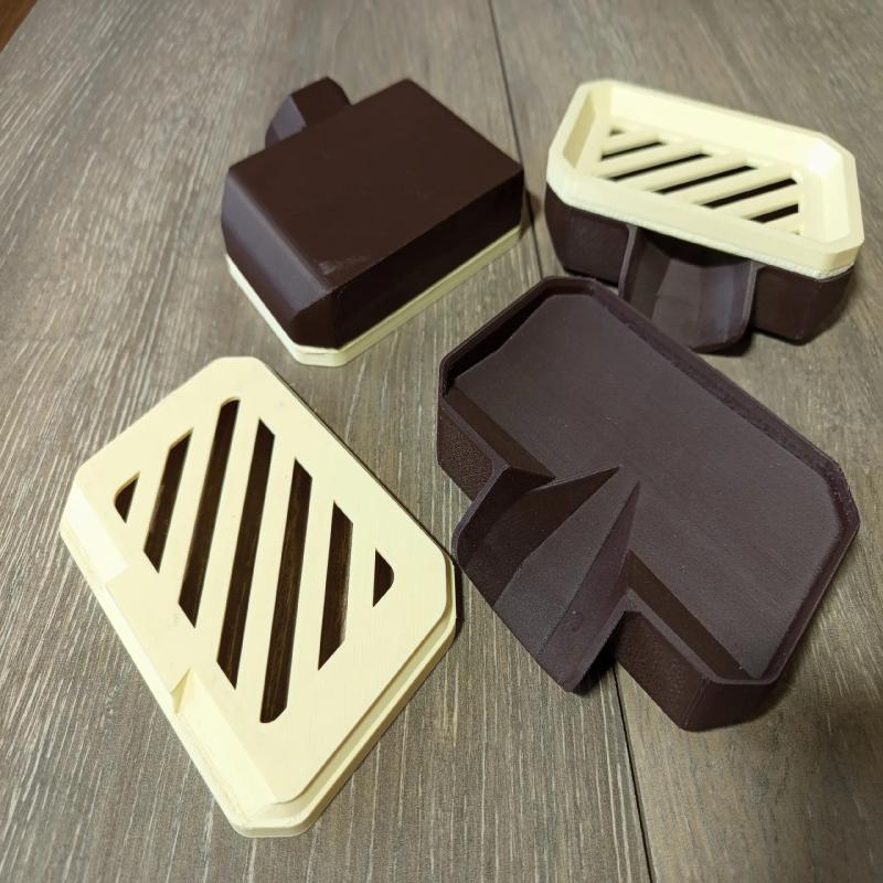 3D printed soap dish with drain channel – keeps your soap dry, clean, and lasting longer. Simple, smart, and functional! PLA+ size 120 x 100 x 27 mm.