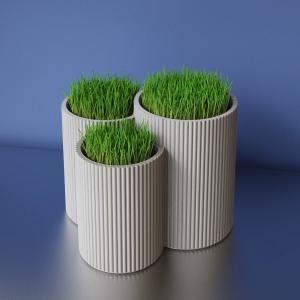 A planter with three separate, circular compartments and a ribbed exterior design. PLA + Size 153 x 100 x 183 mm