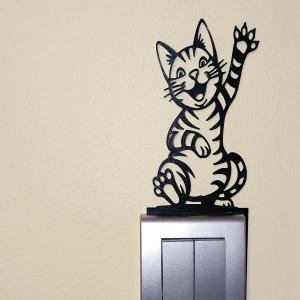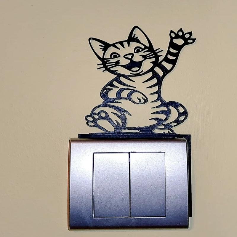 A charming cat-shaped decoration designed to fit neatly next to a light switch or power socket. This cute kitty appears to be playfully reaching toward the switch, adding a warm and whimsical touch to any room. Perfect for modern or cozy interiors. PLA + Size 246 x 123 mm