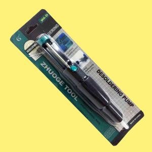 The solder sucker is a handy desoldering tool designed for use with a soldering iron. Simply melt the solder with the iron, place the solder sucker over the molten solder, and trigger it to quickly and cleanly remove excess solder.