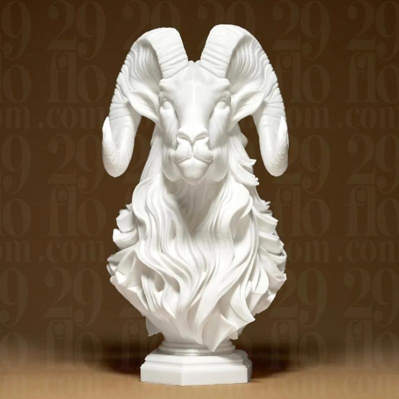 The Elegant RAM Sculpture is a striking decorative piece that blends strength and sophistication. PLA + size 105 x 108 x 150 mm.