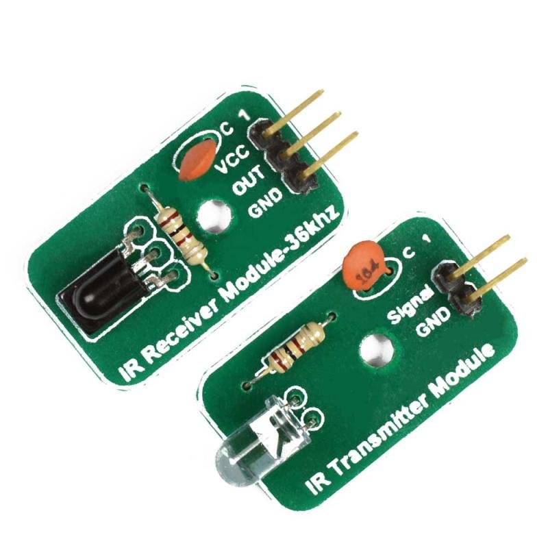 This IR Transmitter-Receiver Pair operates at 36KHz for reliable infrared communication. The transmitter module includes an IR LED, while the receiver module features a TSOP38236 IR sensor for accurate signal detection. Together, they are perfect for building custom remote control systems and other IR-based projects.