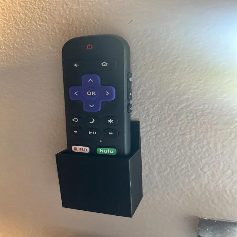 A simple Roku TV Remote holder that takes 1 screw. PLA + size 48 x 29 x 73 mm.