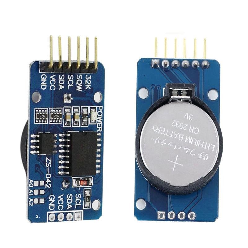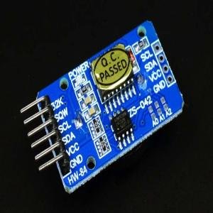 The DS3231 RTC EEPROM module is a high-accuracy real-time clock with battery backup, ensuring precise timekeeping even during power loss. It features a 4K × 8-bit EEPROM for data storage and communicates via the I²C interface, making it ideal for logging, scheduling, and embedded system applications.