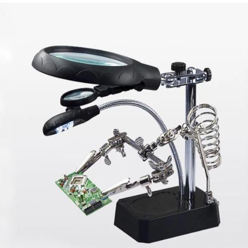 A versatile soldering aid with adjustable helping hands, alligator clips, and a stable base. Designed to hold components, wires, and boards securely, it frees up your hands for precise soldering, assembly, and repair work.