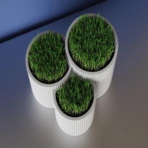 A planter with three separate, circular compartments and a ribbed exterior design. PLA + Size 153 x 100 x 183 mm